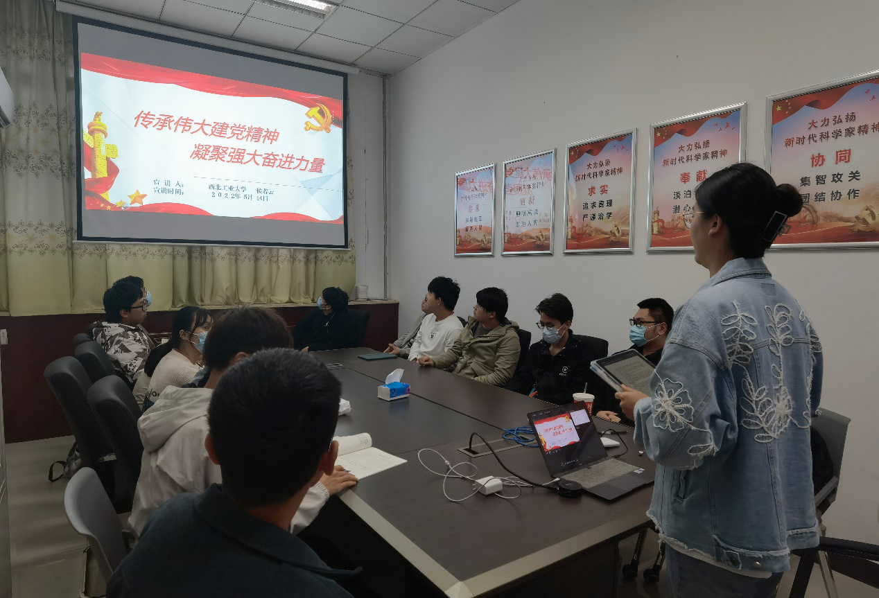 首先,侯若云以“传承伟大建党精神,凝聚强大奋进力量”为题,围绕习近平总书记在庆祝中国共产党成立100周年大会以及在中国共产主义青年团成立100周年大会上的讲话精神,对支部党员开展党课教育,指出坚持真理、坚守理想,践行初心、担当使命,不怕牺牲、英勇斗争,对党忠诚、不负人民的伟大建党精神是中国共产党的精神之源,我们应该继承和发扬。