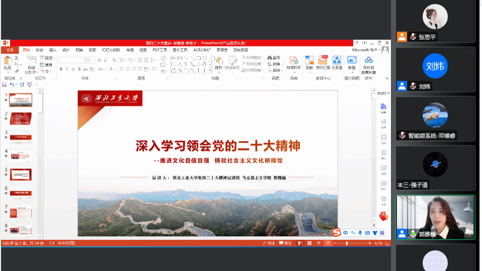 教师宣讲团成员郭雅楠老师做《推进文化自信自强 铸就社会主义文化新辉煌》专题宣讲。会议由抢庄牌九