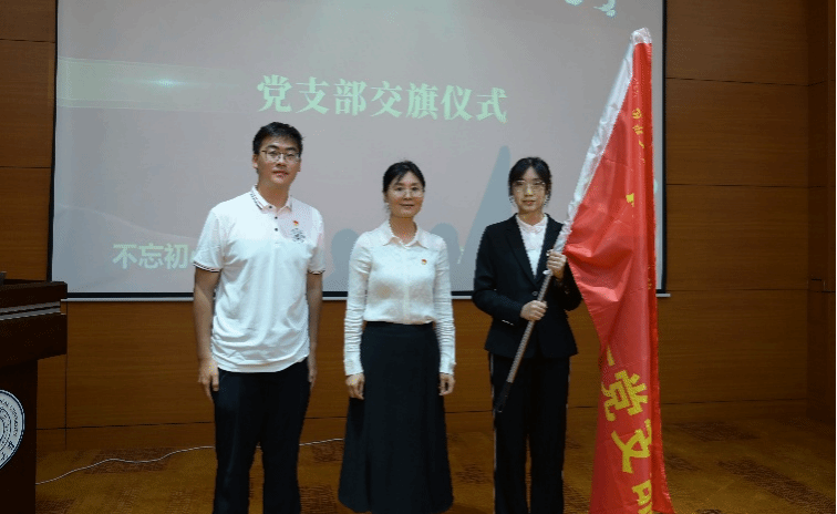 接着,举行党支部交旗仪式。杨妮花书记从毕业生党员代表朱永祺手中接过支部旗帜,并授予2023级党员代表张乐,激励2023级要继承支部光荣传统,向优秀看齐,继续书写微电子学子“芯”篇章。