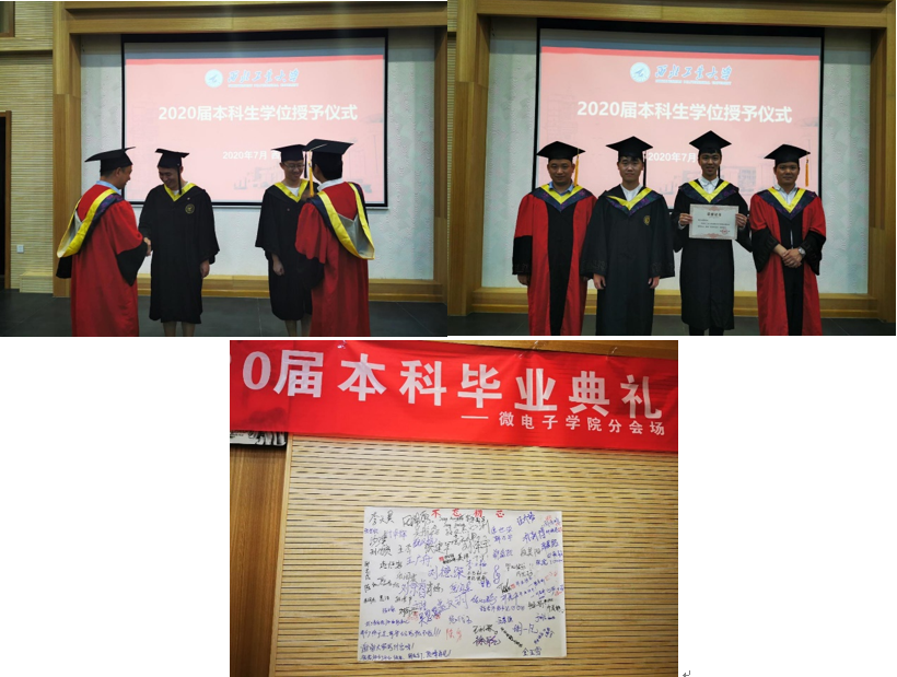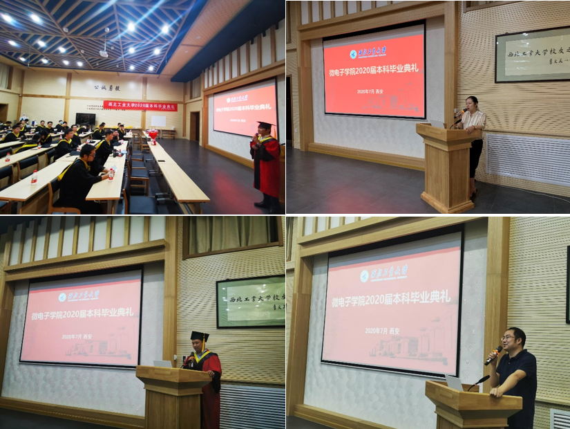 710日下午,西北工业大学抢庄牌九官方版下载 - H5 2020届本科毕业典礼暨学位授予仪式在友谊校区阶二会议厅举行,祝贺全体微电子本科毕业生圆满完成学业任务,获得学士学位。抢庄牌九 副院长王少熙,党委副书记彭蓉,教师代表马彦昭、毕业班辅导员阴玥和全体本科毕业生参加毕业典礼,辅导员阴玥主持仪式现场。