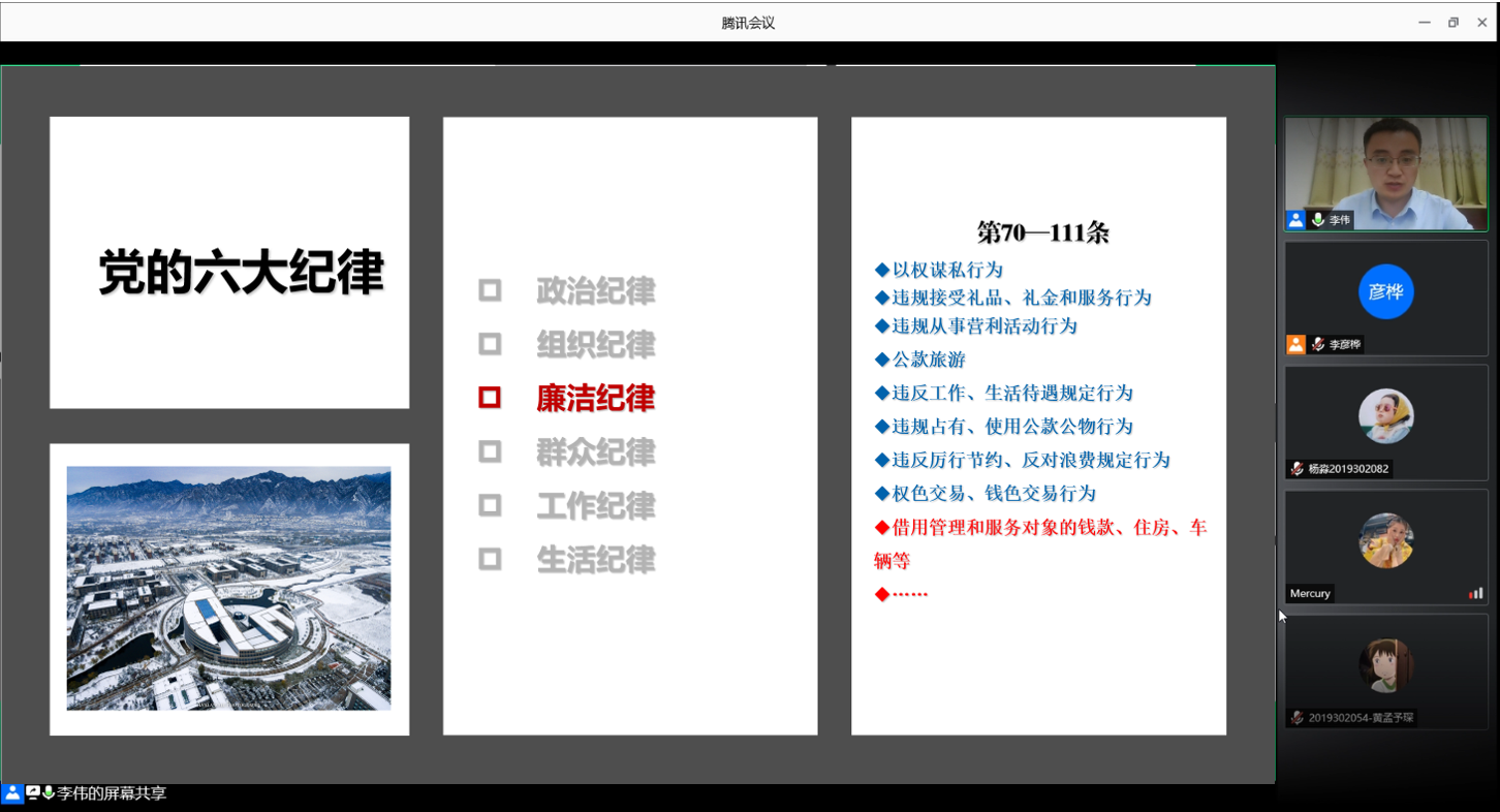 为进一步加强大学生思想政治教育,让同学们正确理解和认识到反腐倡廉对自身和国家的重要意义,抢庄牌九官方版下载 - H5 团委于2020621日为电子信息类12-15班的所有团员在线开展了 “廉洁诚信,从我做起”主题教育团课,向同学们讲解团学青年和学生骨干在日常学习和生活中所应遵守的廉洁品质。