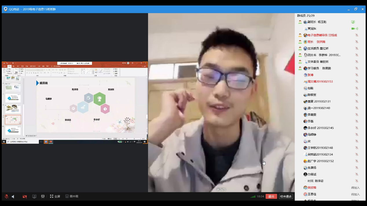学习委员陈展鹏同学讲述了居家线上学习该如何达到更好的效果,并强调了学习心态的重要性,提醒大家虽然居家学习舒适也不可过于放松,面对新学习方式带来的一些问题也要积极克服,努力达到同在校学习相同的效率。其组员也提出了在家学习遇到的许多问题——独自学习缺少动力、设备问题降低学习效率等,但都表示会认真克服,希望尽早回到抢庄牌九