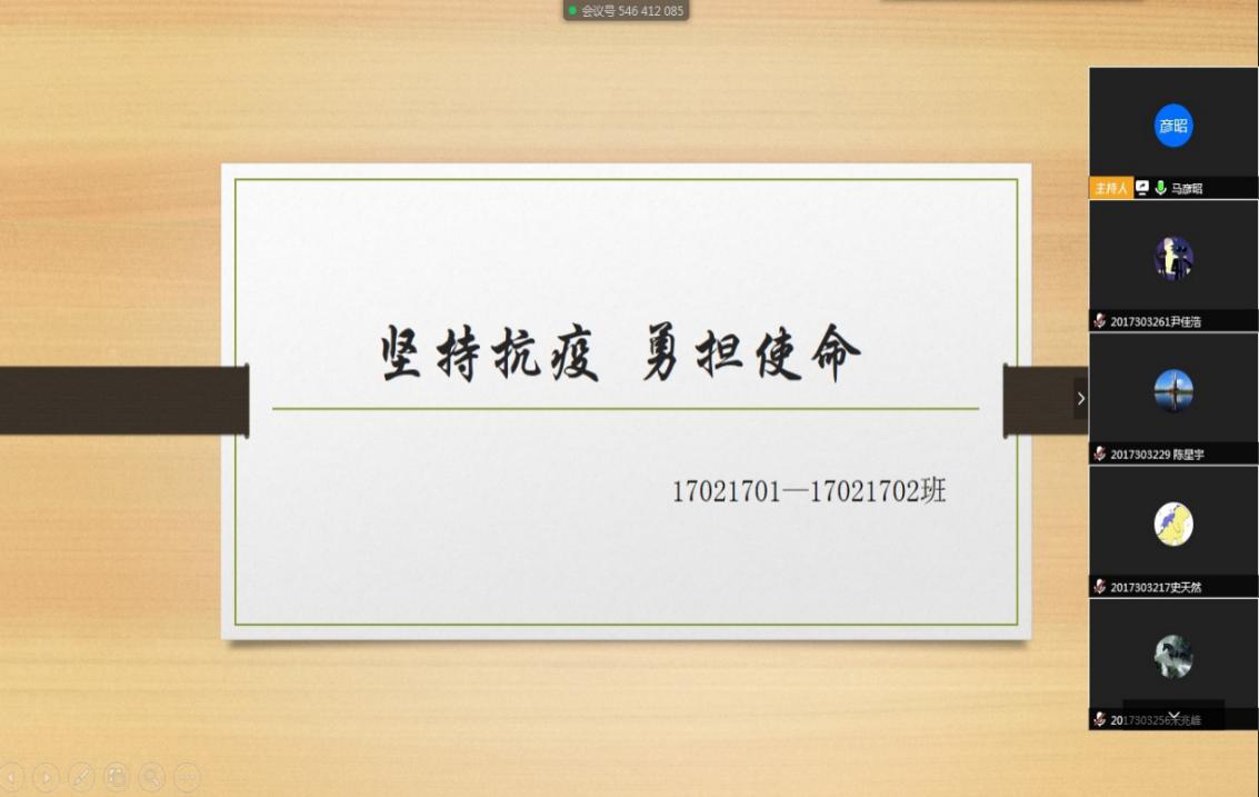 疫情防控尽责担当,立德树人初心不改。抗疫是“战场”,也是“课堂”。为了打好这场抗击疫情的人民战争、总体战、阻击战,抢庄牌九官方版下载 - H5 采取“停课不停学,线上云学习”方式保证教学进度的同时,不断强化学生管理工作,坚持抓班风促学风,3月23日至27日,抢庄牌九 组织2017级本科班在云端分别开展了战“疫”系列主题班会,各小班班主任与同学们就疫情防控、思想状态、学习方法、学业分析等方面进行了深入交流。