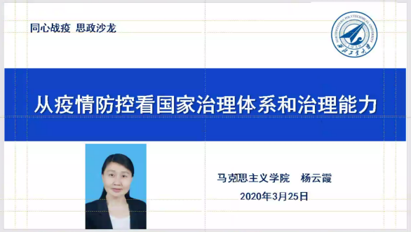 院长杨云霞教授的“从疫情防控看国家治理体系和治理能力”专题讲座。