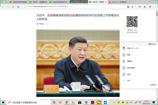 党委的工作部署,微电子师生联合党支部教工党小组通过腾讯会议积极进行线上学习。3月25日,教工党小组全体成员开展了一次疫情防控主题党日活动。