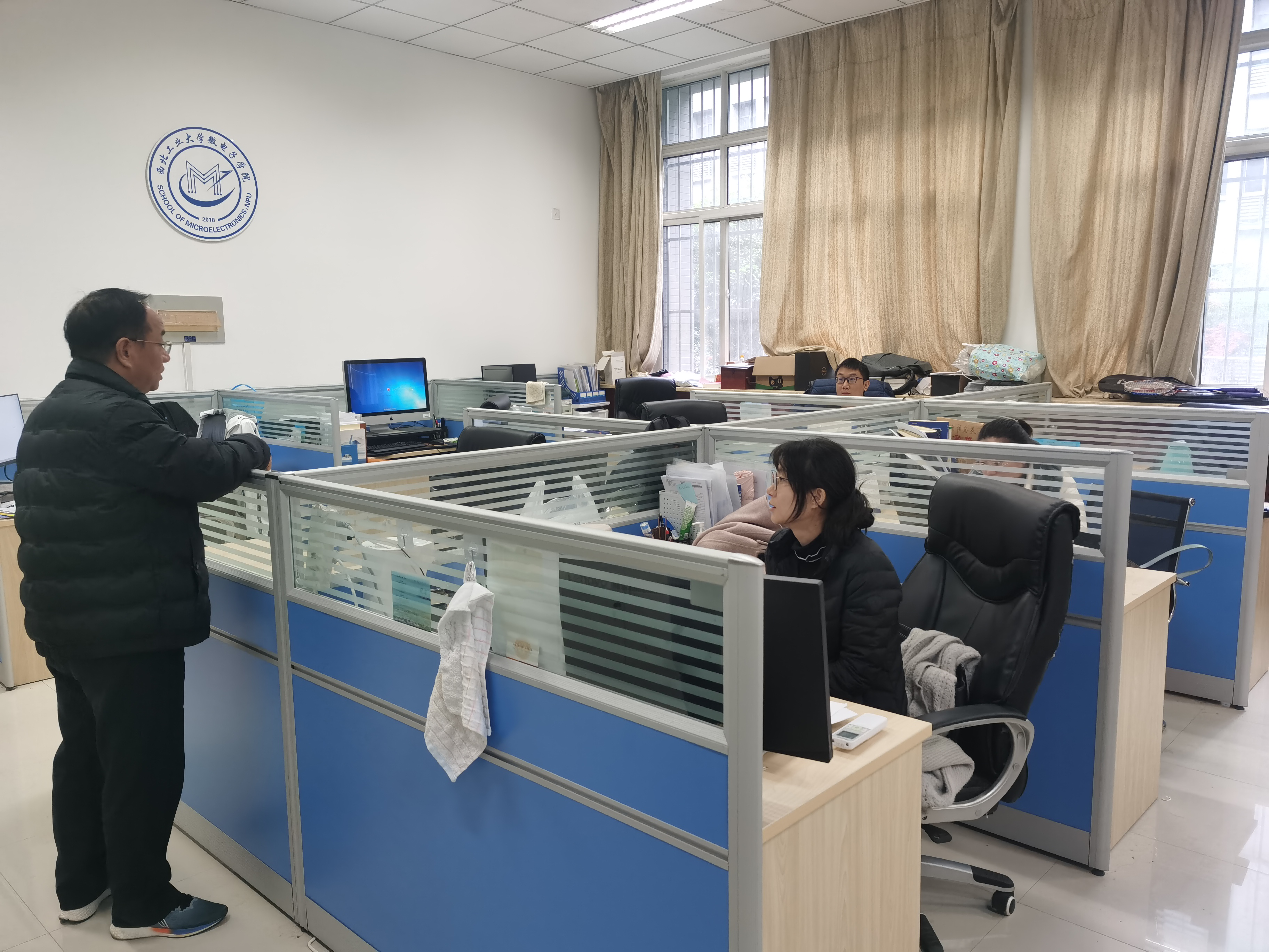 分管学生工作的党委副书记高武、2019级辅导员徐文涛一行检查学生安全,本次检查重点关注学生宿舍的安全秩序状况,对违规电器使用、不及时断电、吸烟明火等安全隐患进行全面排查,同时对房间卫生状况、室内通风等情况进行查看。