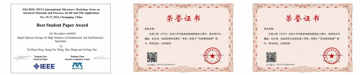 在人才培养方面,张浩老师主讲了《射频集成电路设计》与《集成电路版图设计》等课程,同时以赛促教,指导本科生获国际学术会议最佳学生论文奖、集创赛西北赛区一等奖,指导本科毕设15人,4人获优秀毕业生荣誉称号,指导硕士生4人,2人获优秀研究生荣誉称号。在日常的教书育人过程中,张浩老师能够对参加科研项目的学生开展爱国主义、学术诚信和集体主义教育,在价值取向、学术导向、科技创新等方面言传身教、以身作则,积极弘扬科学家精神,培养学生的责任担当和严谨求实的科研作风。深入贯彻抢庄牌九 “顶天、立地、育人”的科研工作理念。
