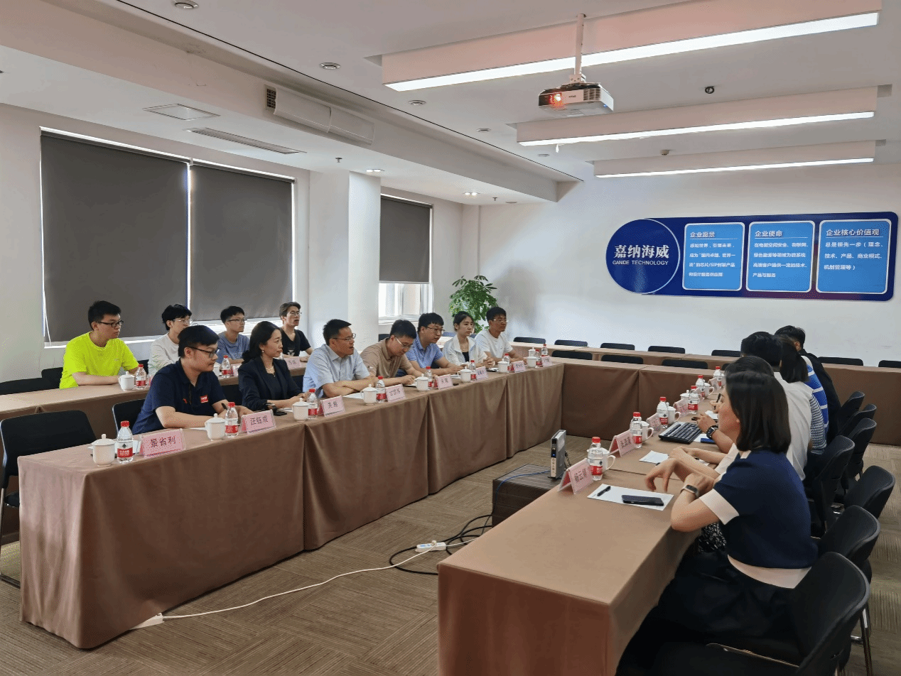 嘉纳海威公司经理王测天带领各部门经理对来访师生表示热烈欢迎,为大家讲解了嘉纳海威的发展历史、工作模式以及公司代表性的芯片。