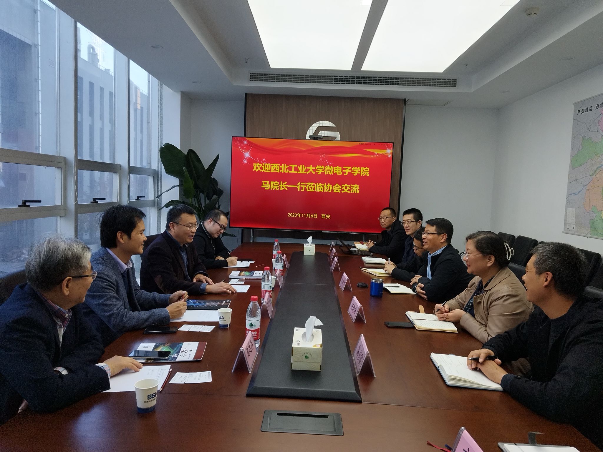 院长马炳和、副院长王少熙、院长助理阴玥、魏廷存教授一行访问陕西省半导体行业协会,协会常务副理事长兼秘书长何晓宁及秘书处相关工作人员参与接待。