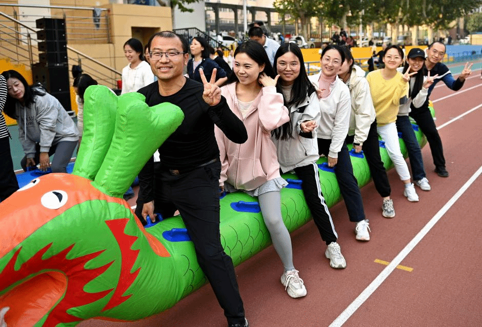 教职工们团结协作、愉快竞技。“接力夹乒乓球”出手要快准稳,考验的是技巧和功力,“投壶”是传统与现代的结合,需要的是精准度和稳定性,“旱地龙舟”是团队协作的较量,是默契度和配合度的体现。在比赛中,老师们放下了平时繁忙的工作,全身心地投入到这场趣味活动中。紧张而有趣的竞赛,充分激发了抢庄牌九