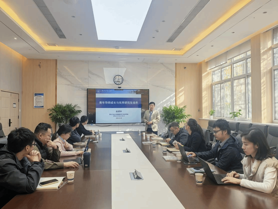 赵建林结合自身研究生培养的经验,围绕青年导师的成长与优秀研究生培养的主题作报告,主要从研究生教育的目的及特点、导师的作用与素质要求、研究生成长过程应培养的能力、青年导师如何成长的几个方面展开,指出各位导师应增强岗位意识,明确导师职责;要注重师德师风,尊重并关爱学生,因材施教;要坚持一线科研,练好内功;要明确目标、双腿走路、步步为营;要依靠一个团队、学做导师;要严谨治学、树立声誉。