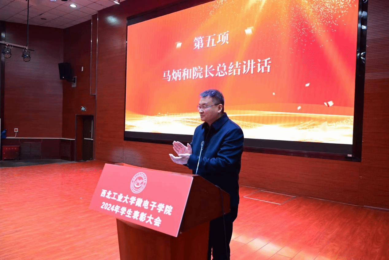 对受到表彰的学生先进集体和个人表示热烈的祝贺,向辛勤耕耘的老师们表示衷心的感谢。他希望同学们要爱国荣校、志存高远,不负时代赋予青年人的使命;要不断提升学识、见识、胆识,成为有才、有爱、有魂的领军人才;要心存大海,高标准要求自身,打造丰富多彩、有品质的人生。最后,他强调,全院上下要持续推进“总师育人文化”走深走实,为培养微电子领域“总师型”人才奠定坚实基础。