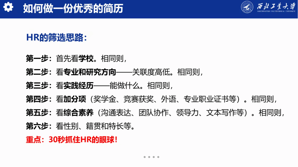 会议伊始,常晓辉基于往年就业情况及行业调研数据,对当前就业形势展开深度解析,他指出当前高校毕业生人数持续攀升,人才招聘标准日益提高,就业形势更加严峻。针对这一现状,常晓辉建议同学们一是要勇于拓宽就业视野,打破地域局限,走出西安,关注长三角、粤港澳大湾区等产业集聚区的实习招聘窗口期;二是要合理安排求职时间,积极抢抓5-7月暑期夏令营和实习机会,9-10月秋招黄金期,建立动态投递进度表;三是要树立正确的就业观,采取“先就业积累经验,再择业锚定方向”的政策,为未来职业发展奠定坚实基础。