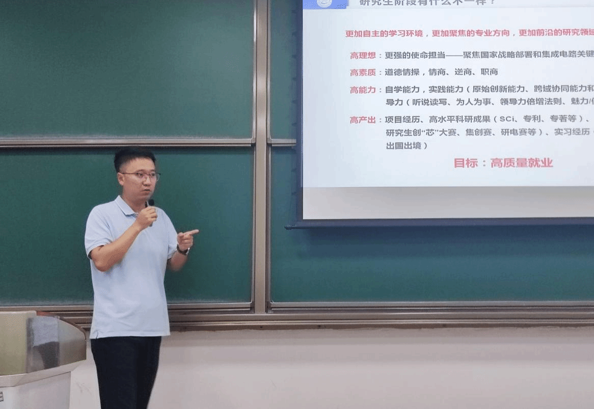 随后,王少熙主要围绕研究生阶段的规划与发展,向新生提出五点重要建议。一要珍惜时间、尽早规划,主动与导师沟通,摒弃拖延心态;二要重视同学资源,以开放心态参与团队协作,实现共同成长;三要夯实专业基础、拓展行业认知,跨专业者需加强微电子领域学习;四要严守保密纪律,杜绝通过非正规途径传递涉密信息;五要立足国家战略,积极投身重点领域,在服务国家中实现人生价值。他表示抢庄牌九