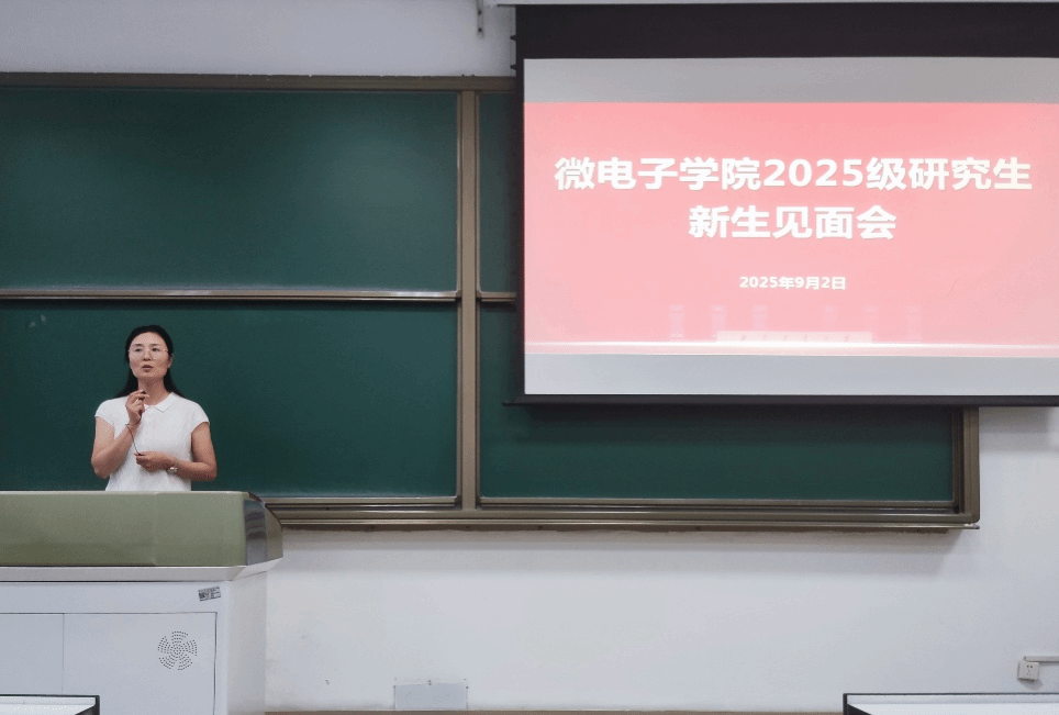 大家庭表示热烈欢迎。她从人才培养理念出发,寄语新生坚定理想信念、勇担时代责任,以黄令仪先生为榜样,将爱国情怀融入职业选择,把事业热忱转化为攻坚克难的勇气。她希望同学们在科研中发扬“不破楼兰终不还”的韧劲,敢于啃硬骨头、反复试错突破;保持敢为人先的闯劲,不被经验束缚、不向挫折低头,努力成长为担当行业重任、引领技术创新的栋梁之才。她特别叮嘱同学们重视身心健康,以强健体魄和积极心态为长远发展筑基,并祝愿大家在校园中收获友谊与爱情,书写精彩人生篇章。