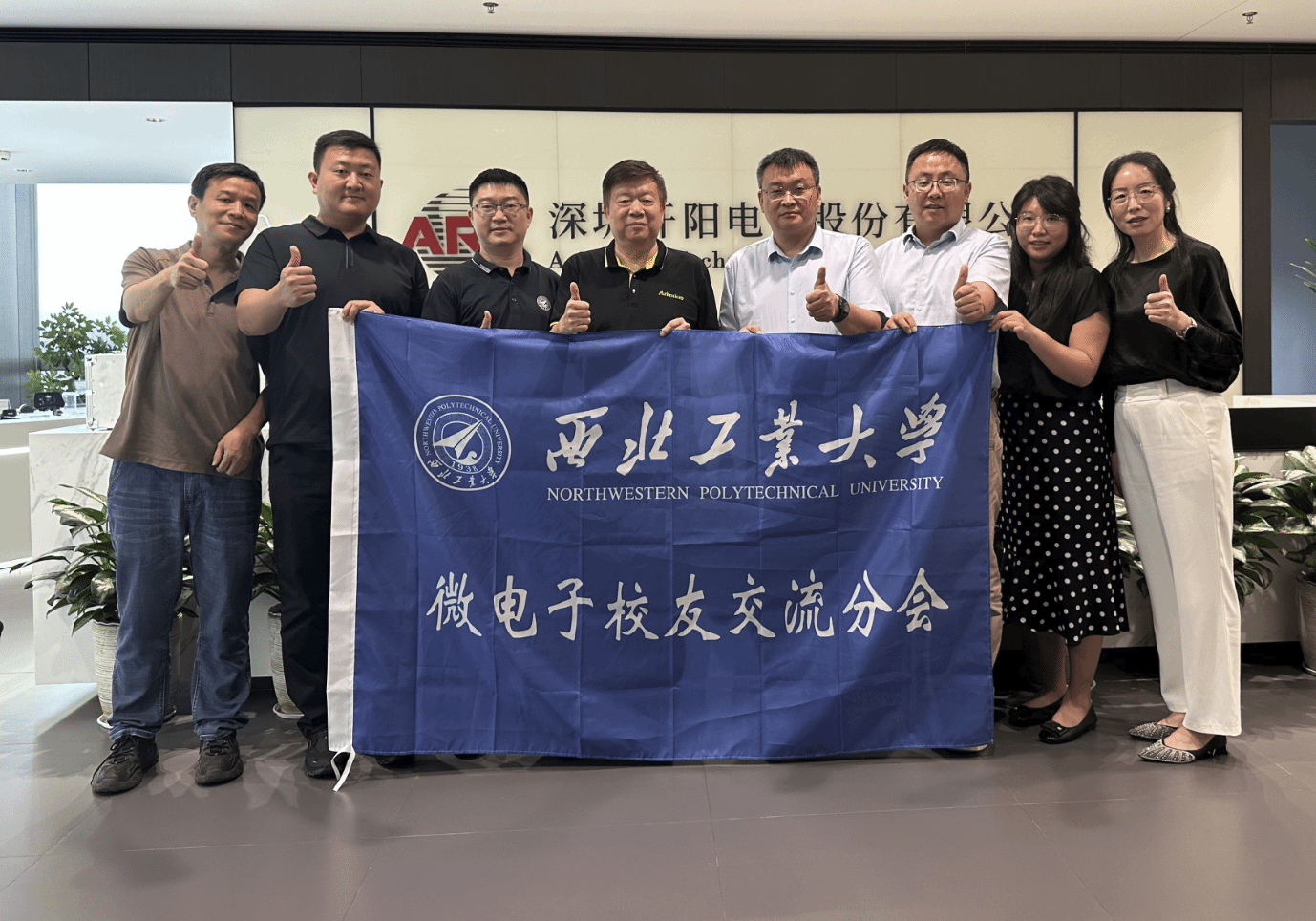 校友会微电子校友交流分会秘书长刘世伟、副秘书长武斌,西安精雕软件科技有限公司总经理蔡锐龙,银河证券尤媛媛等校友陪同交流。