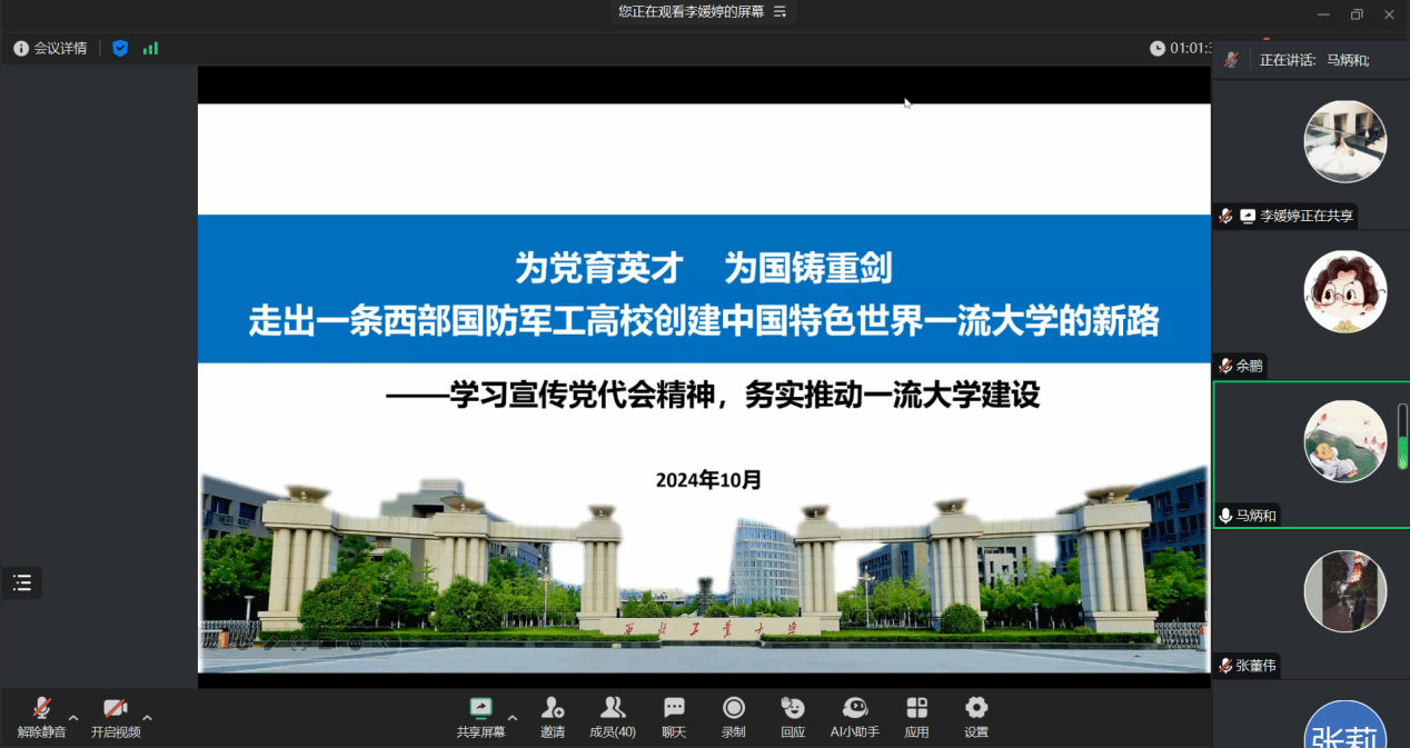 第十四次党代会确定的“天下工大、世界三航”远景目标、新“三步走”战略构想进行了重点解读。